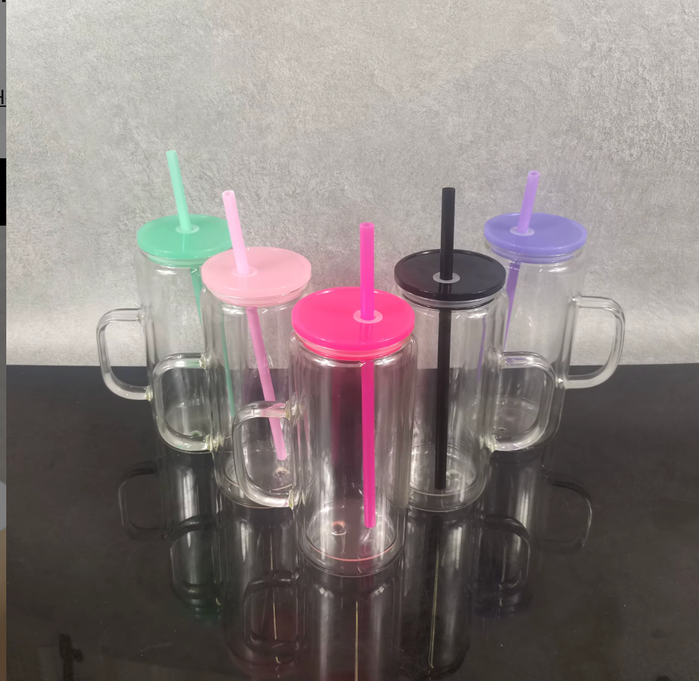 16oz GLASS Snow Globe Tumbler W/Handle Color Lid and Straw